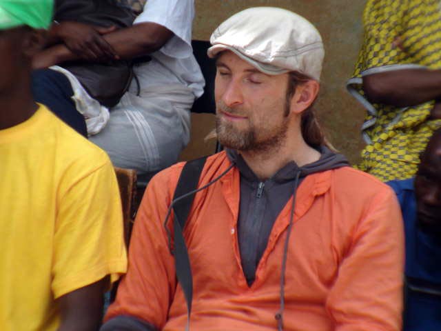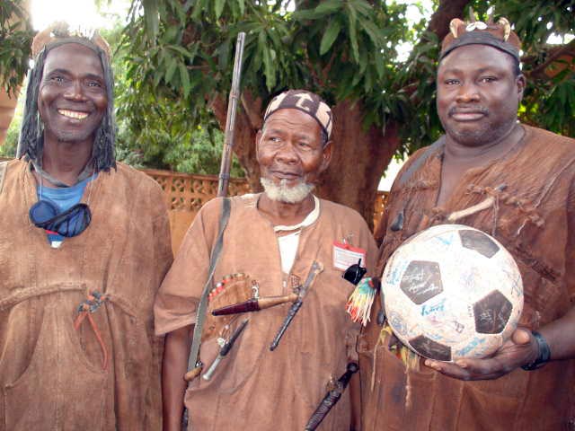 In Siby’s mayoral compound, drummers and hunters are gathered. At first the drumming is haphazard, but more and more people gather as the drums call folk together. The mayor, village chief and other dignataries arrive. The ceremony takes shape.