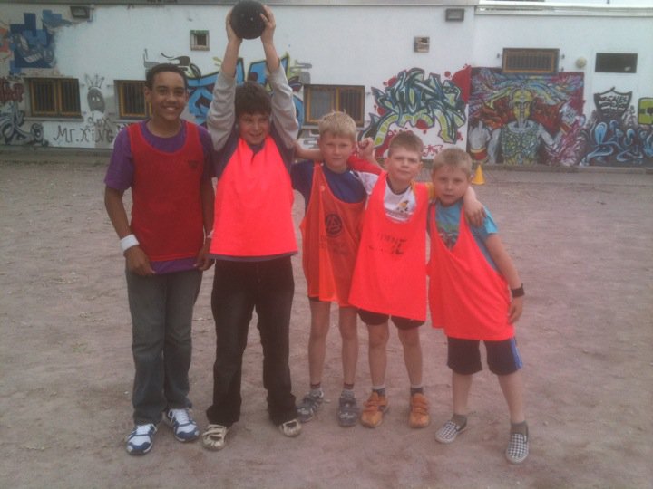 The Fair Play winners hold up the Game Ball…which they made themselves from plastic bags, using à Zambian ball Making technique.