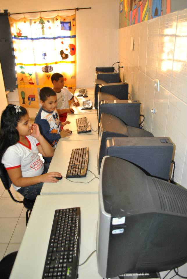 Spirit of Football Brazil has set up this computer centre in the Heliopolis favela in the district of Sacomã, São Paulo. These children are enjoying using the learning facility.