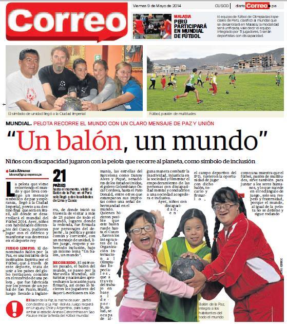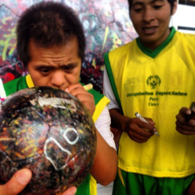 The Ball is helping to raise the profile of Special Olympics by promoting inclusion as it goes. EVERYONE can play and sign The Ball. Here The Ball in the press with Olimpiadas Especiales Peru in #Cusco