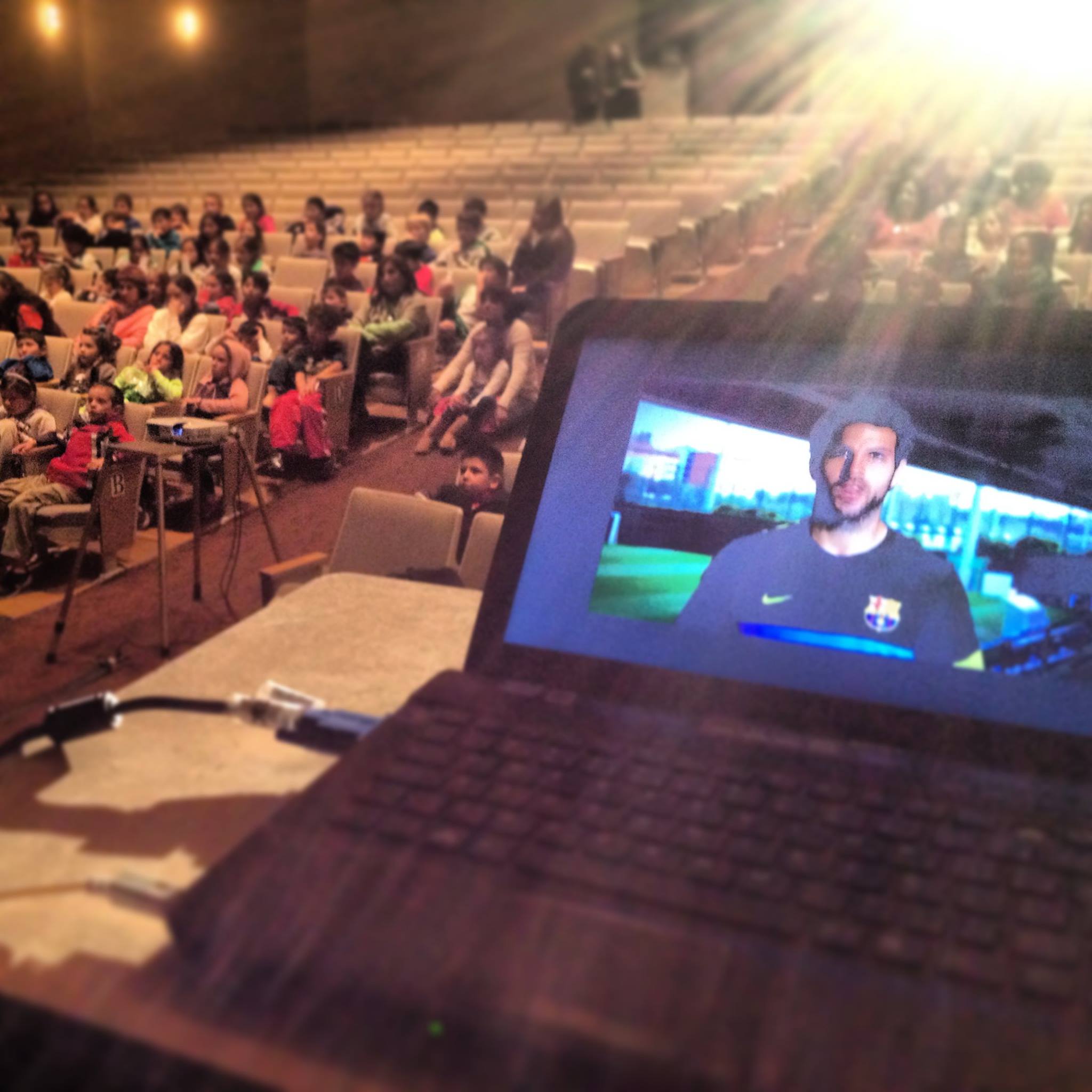 The Ball`s journey is morally supported by FC Barcelona . Here is an image of 200 + children at the ACS La Paz, Bolivia watching Cesc Fabregas saying One Ball, One World… Special Olympics Bolivia