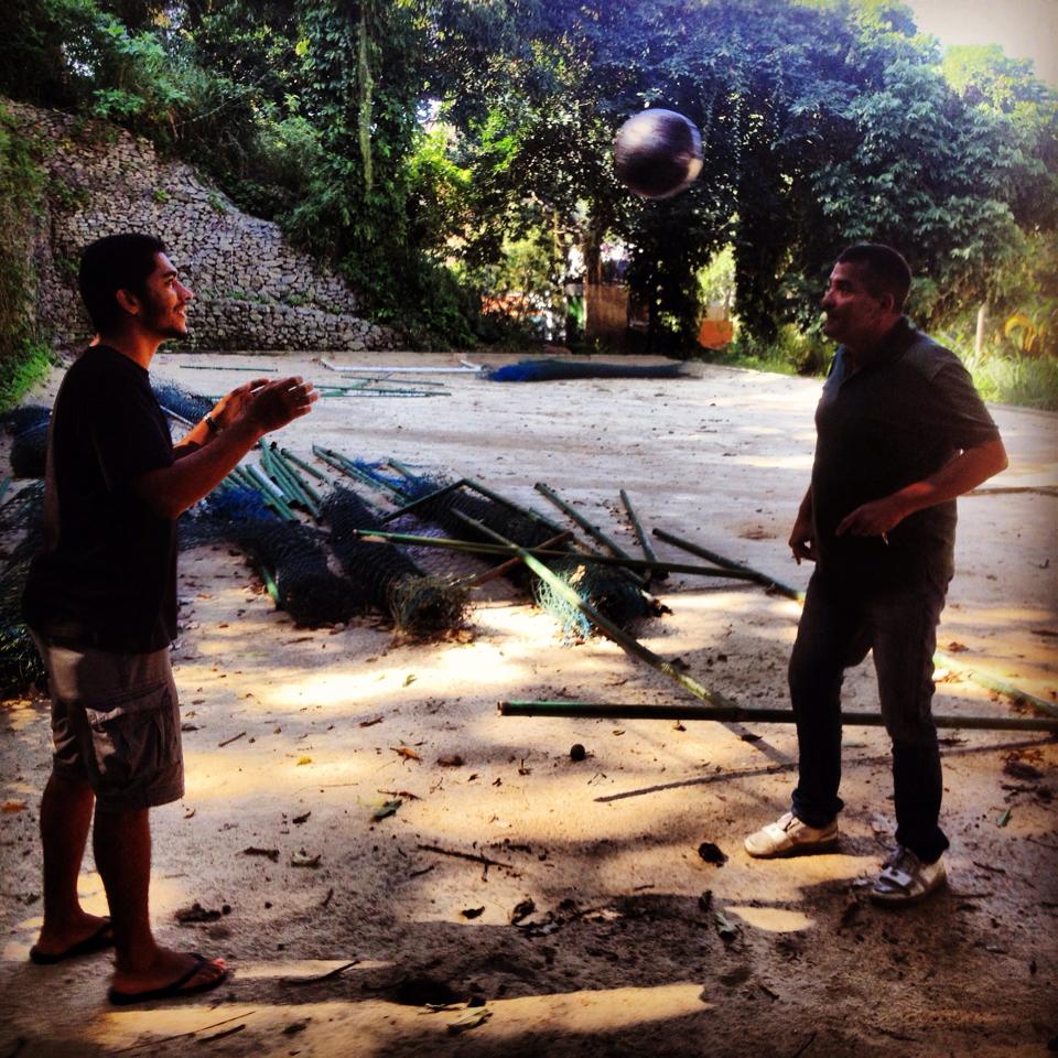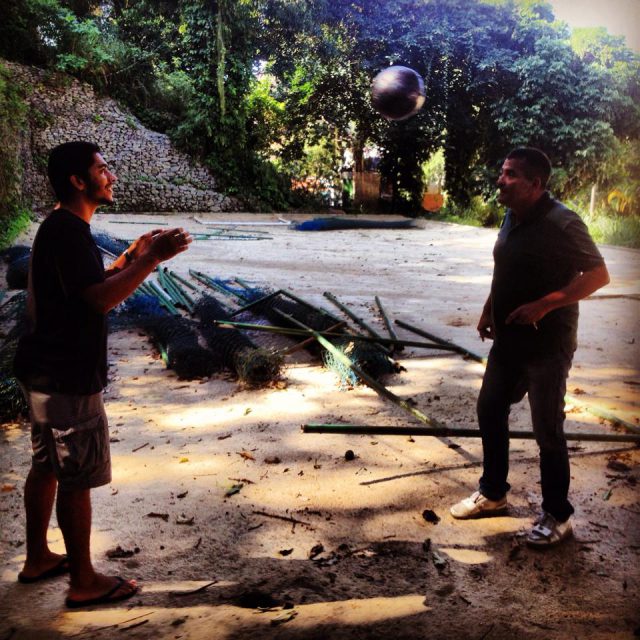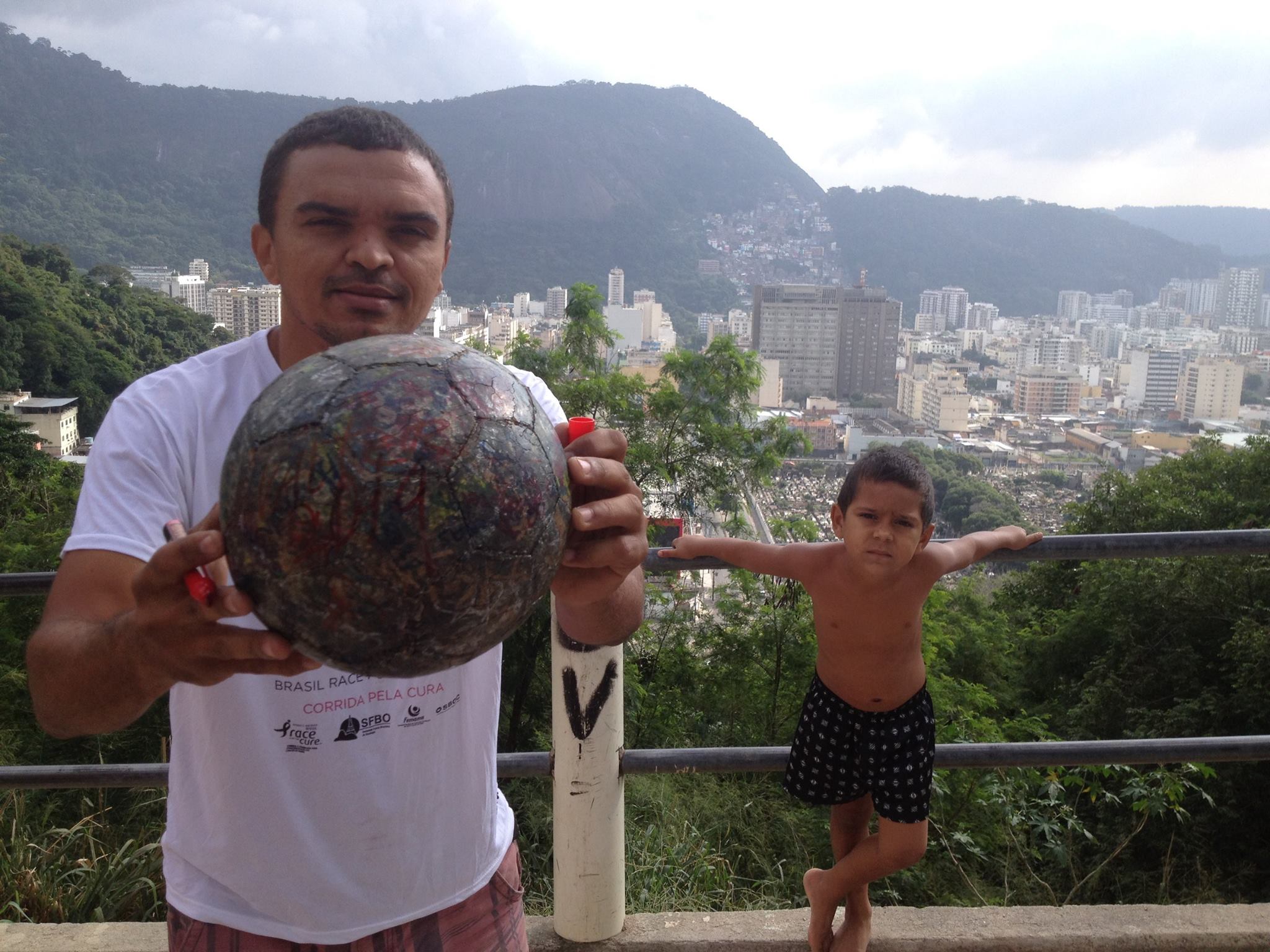 Tinho, owner of Titia Hostel Rio de Janeiro with The Ball. Thanks to Tinho and Paul for giving The Ball a place to rest for a day or two and for organising favela football this afternoon. One Ball, One Titia Hostel. Valter Alexandre Gomes Figueiredo Paul Finnerty