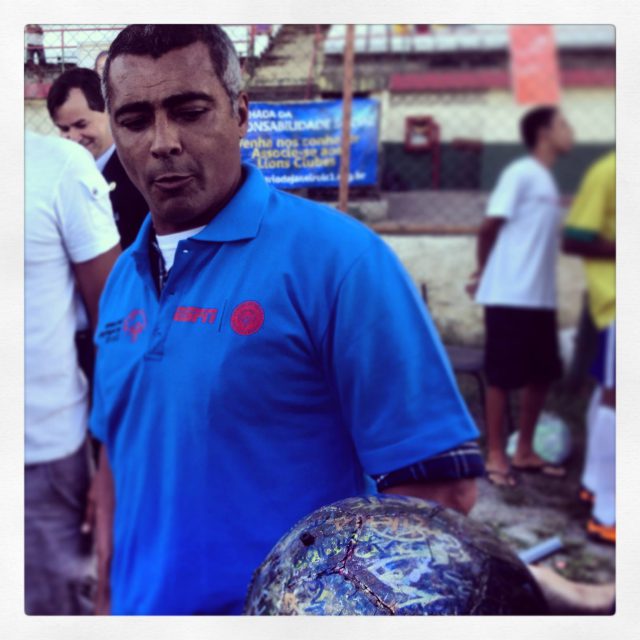 World Cup legend Deputado Federal Romário signs football`s Olympic Torch, The Ball, in Rio today. Here he is looking at The Ball while listening to its story.