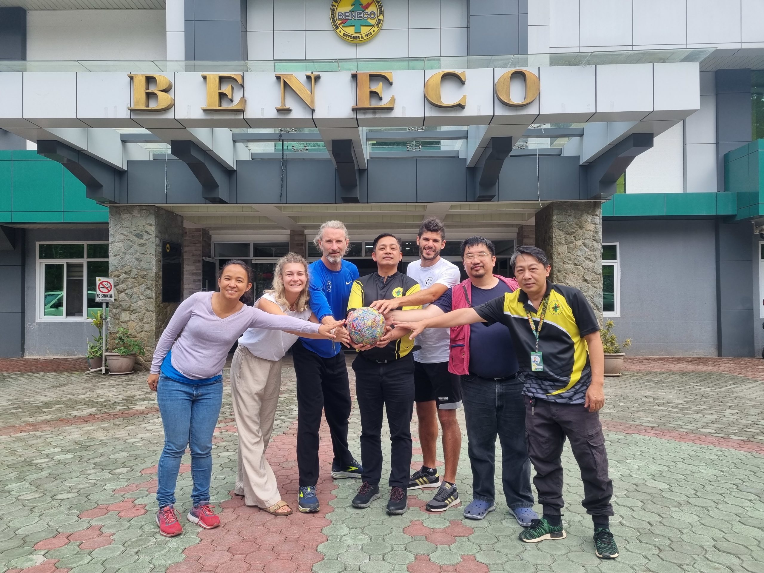 One final stop was at the energy company BENECO, where acting general Manager Engr Ramel Rifani was happy to sign The Ball and pledge to continue to build renewable energy plants to support One Ball, One World. He also symbolically handed over the keys to the driver (Mike Santos) of the van that BENECO had sponsored to take The Ball and its team to Sagada the next day on a 6-hour journey to the indigenous communities in the Mountain Province municipality.