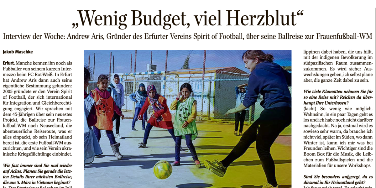 Interview in the German newspaper with Spirit of Football’s President Andrew Aris on The Ball 2023 Journey.